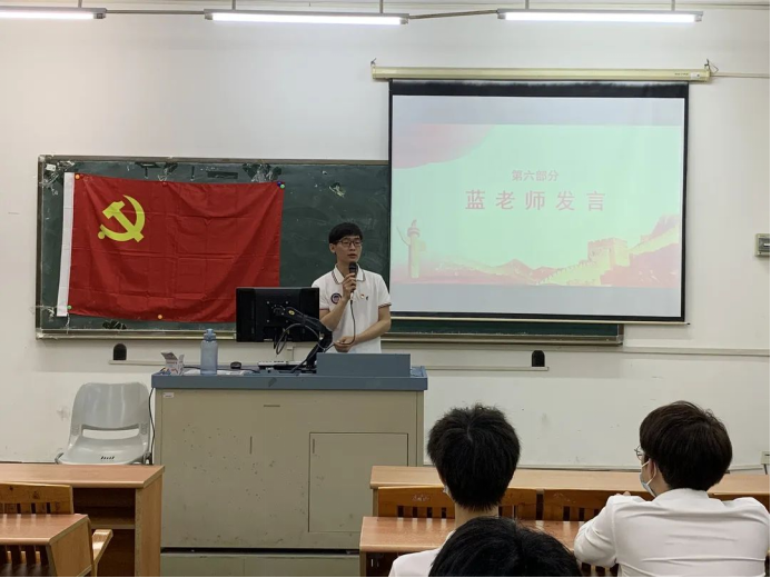 大会第七项为蓝老师总结发言。蓝老师首先对上学期支部的工作成绩和不足进行了总结;紧接着,他希望接下来本支部日常“组织学习”这一块,可以通过多种形式去完成;在党建活动上,要加强系统化、体系化建设与发展。同时,他还希望各党员同志能够有强烈的担当意识,充分发挥先锋模范作用;自觉学习党的理论知识和重要会议精神,保持学习的热情。
