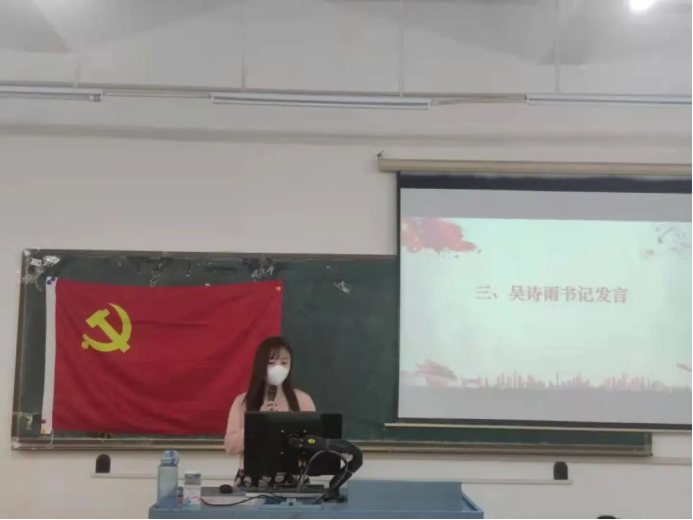 大会第三项为吴诗雨老师发言。吴诗雨老师表示,通过学习两会精神,当代青年应该在继承与发展中,以拼搏精神和改革精神不断探索,要学会独立分析、思考和解决问题,自觉培养创新意识和发散思维。以新思路、新举措、新观念打开学习工作上的新局面。她提到,作为新时代大学生,同志们应该了解国内外形势,认清大局,坚决拥护党和国家的决策。她希望,每位同志都能在实现个人理想和国家梦想的道路上奋勇拼搏,全面发展,提高个人综合素质,努力实现自身的目标价值。