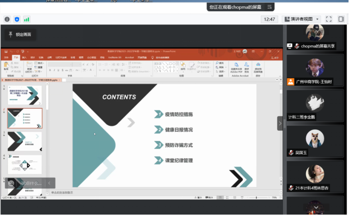 居家网课学习的同学们也积极配合,准时准点进入课堂,在家也能看见熟悉的老师和同学们,更能调动同学们线上学习的主动性和积极性。
