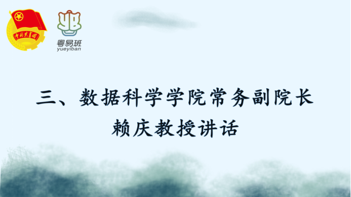 大会第三项为数据科学学院常务副院长赖庆教授讲话。赖庆副院长首先表达对老师同学们参加此次动员大会的感谢,并强调文明安全纪律教育的重要性和必要性。举办文明安全纪律教育月活动的根本目是要切实提高同学们的自律意识和安全防范能力,科学落实疫情防控举措,内强素质,外树形象,推动校园文明建设。