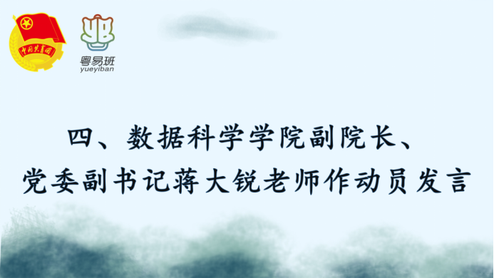 大会第四项为数据科学学院副院长党委副书记蒋大锐老师作动员发言。为进一步部署推动数据科学学院文明安全纪律教育月系列活动,增强我院学生的安全防范意识,规范行为举止,养成讲文明、重安全、守纪律的良好风尚,蒋大锐副院长针对此次动员大会,提出以下两点要求: