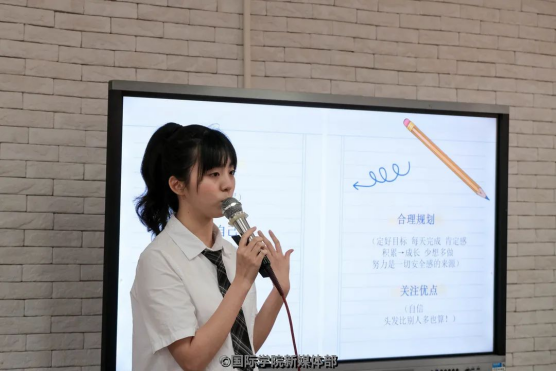 黄丽滇同学认为,志当存高远。平时积极参与活动、奉献爱心。不仅如此,她提议同学们跳出舒适圈,多进行新领域的尝试与挑战。最后,黄丽滇结合自身经历给同学们提出以下几点建议: