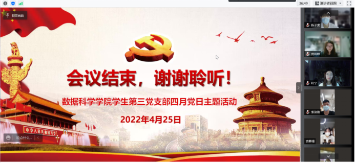 至此,数据科学学院学生第三党支部“疫当下,履职责,担使命”党日主题活动圆满结束。