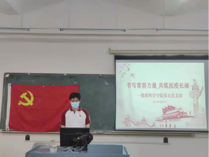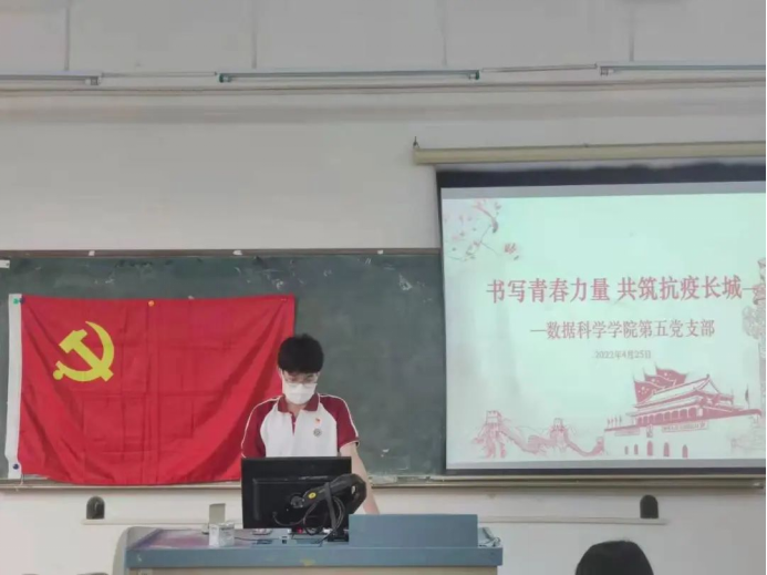 为做好疫情防控工作,提高防疫意识。数据科学学院学生第五党支部于4月25日17:45在励志楼D202开展“书写青春力量,共筑抗疫长城”党日主题活动。出席本次会议的有数据科学学院学生第五党支部全体在校党员及第26期拟发展对象。本次会议由陈炽堃同志主持。
