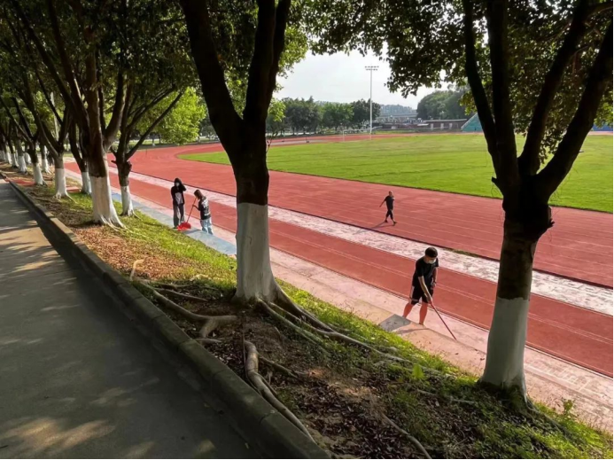 本次活动数科院负责清洁西区足球场,以及环绕四周的主道路,道路两旁花木丛生,存在许多的卫生死角,很多垃圾和枯枝落叶堆积,每位志愿者都主动带上扫把等清洁工作,大家分工明确、通力协作,有的拿着扫把清理卫生死角的垃圾,有的拿着簸箕和垃圾袋将杂草、垃圾等进行清理,有的搬运装袋好的树叶。每个志愿者们都在认认真真清扫着校园的角落,努力让西区足球场和周围道路变得干净整洁。