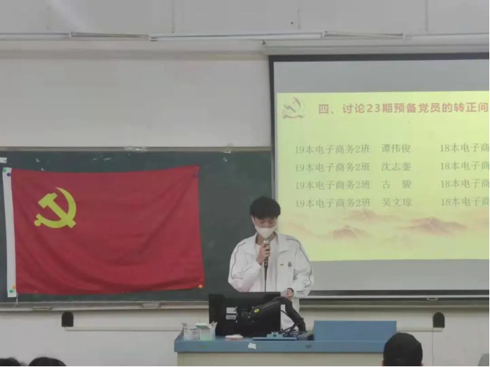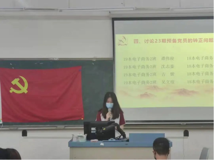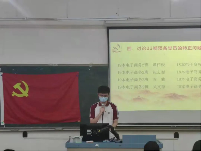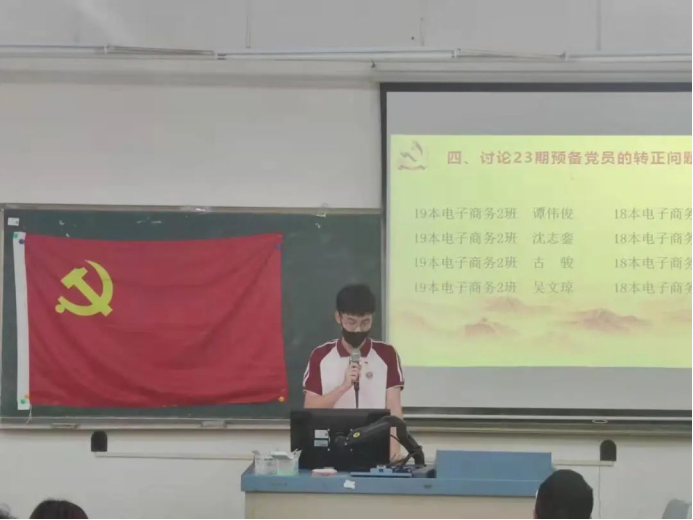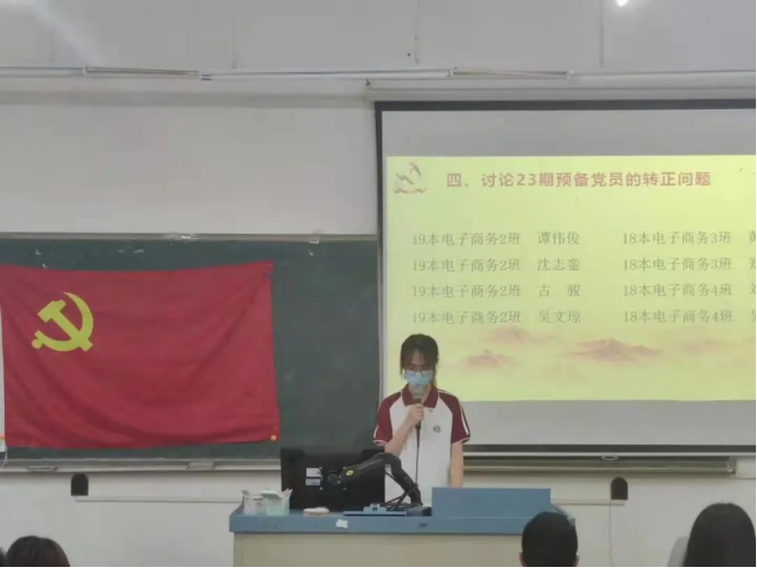 2022年5月7日17:45,数据科学学院学生第五党支部于励志楼D102召开第23期预备党员转正大会。出席本次会议的有数据科学学院学生第五党支部书记吴诗雨老师、支部全体党员。大会由陈炽堃同志主持。
