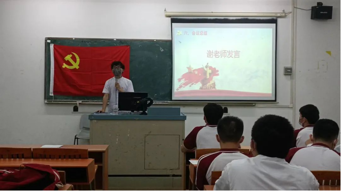 大会第六项为谢朋涛老师发言。谢朋涛老师向按期转正成为正式党员的同志们表示祝贺,也对他们提出期望。谢老师强调,转正成为正式党员是对预备期间的表现的肯定,希望同志们接下来能够严格要求自己,继续为同学服务。同时,也对所有党员们提出要求:不忘入党初心,相互帮助,用自身实际行动践行党员职责,积极发挥引领示范作用。