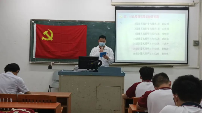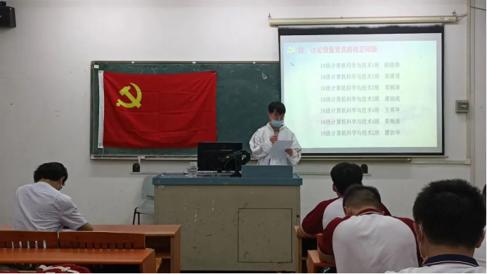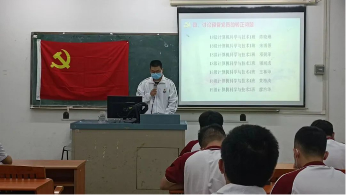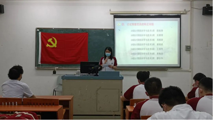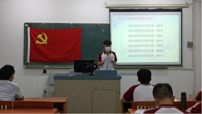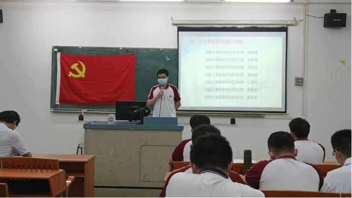 大会第三项为介绍党支部概况。数据科学学院学生第一党支部(原信息工程系学生党支部),2019年10月因基层党组织设置调整,更名为数据科学学院党支部;2020年04月因基层党组织设置调整,更名为数据科学学院学生第一党支部,主要负责学院计算机科学与技术专业学生党员的培养、发展、教育与考察工作。目前在校党员61名,其中正式党员27名,预备党员34名。