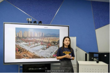 吴秋彤同学从2020年武汉仅用十天建成火神山医院的抗疫事件入手,称赞了中国独一无二的抗疫精神和速度。她认为,在疫情期间,正是因为全国人民上下一心,众志成城,才能以惊人的毅力克服了困难。此外,她呼吁同学们应该不断提升自己,用爱和智慧迎接每一个挑战。