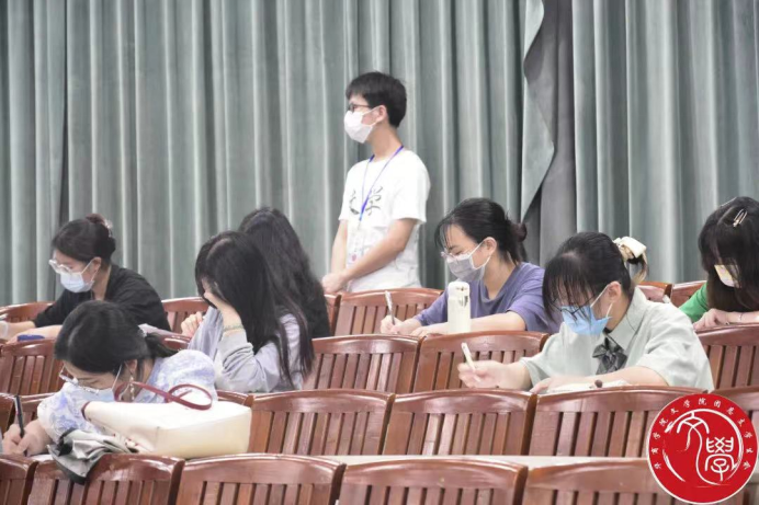 为考察同学们对教师行业的了解,给予对有意愿未来成为一名人民教师的同学一个展现自我的舞台,文学院团总支文娱实践部于2022年5月23日18:30分别在励志楼A408、B407、C408举办第十届“寻找未来教师之星”专业技能大赛初赛,考察内容为中小学教师资格证笔试真题内容。本次大赛严格按照疫情防控要求,隔空就坐。同学们遵守考试纪律,一同打造优良的考风考纪。