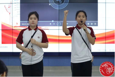 当比赛开始的时候,一支支队伍有序地上场,同学们慷慨激昂的朗诵,气宇轩昂的姿态,向观众展现了新时代青年的蓬勃朝气;他们抑扬顿挫的语气,深沉丰富的内容,表达了内心对祖国缠绵热烈的爱。
