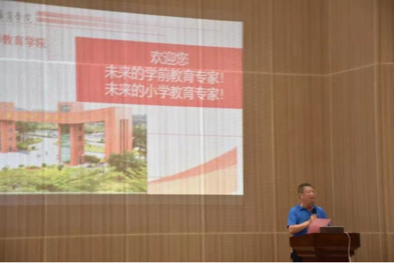 第六项议程:院长讲话。院长王金道教授发言,王金道院长代表教师教育学院全体教师对2022级全体新生的到来表示欢迎,并介绍学院发展历程以及庞大的师资队伍。王金道院长更是勉励同学们,要珍惜时光,刻苦学习,努力做好身边人的精神之师,在生活中做好榜样作用。践行“请党放心,强国有我”的铮铮誓言,为培养德智体美劳全面发展的社会主义建设者和接班人贡献力量。
