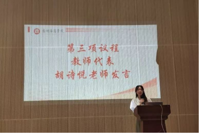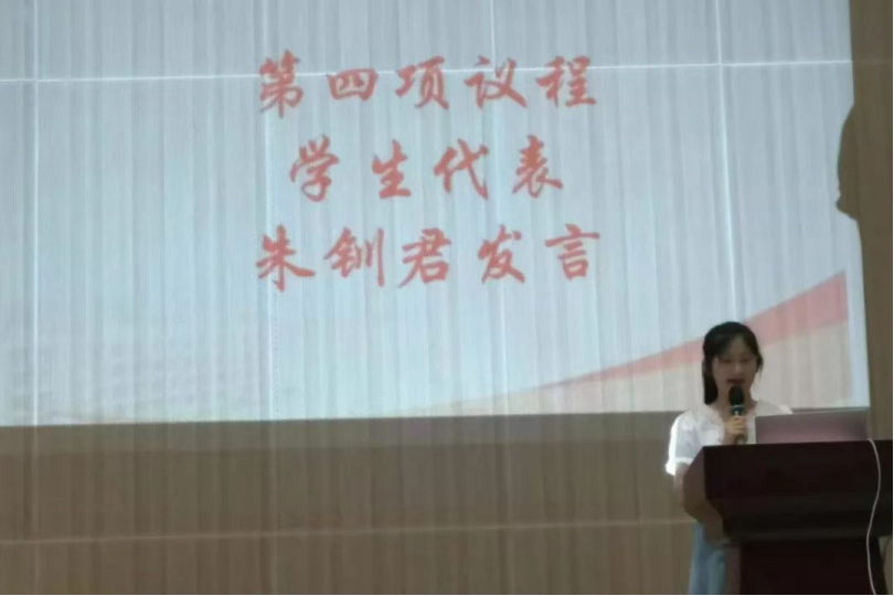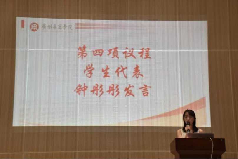第四项议程:学生代表发言。学生代表钟彤彤同学发言,愿校训“厚德、励志、博学、创新”能刻在华商学子的骨子里,努力成为有理想、有学问、有才干的教院人。学生代表朱钏君同学发言,朱钏君同学表示,青春有无限种可能,作为新生的我们应当脚踏实地,仰望星空,以更自信的姿态,去迎接未来。