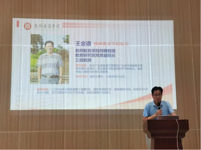 为了新生更好地融入教师教育学院这个大家庭,教师教育学院于2022年9月8日,在广州华商学院四会校区二号楼报告厅分两场举行了2022级本科新生见面会。出席本次师生见面会的领导嘉宾分别有教师教育学院名誉院长扈中平、院长王金道、副院长张博、教育研究院副院长郑淮、小学专业负责人李志厚、教师教育学院副教授王符、行政办主任梁思婷、教科办主任黄梓芬、学工办主任李师、教师技能培训中心主任李世平、小学教育系副主任潘昕迪以及教师教育学院全体教师出席了本次会议,本次会议由谭建生副院长主持。此次会议共七项议程,分别是奏唱国歌、师资队伍介绍、教师代表发言、学生代表发言、知名教育学家讲话、院长发言、合影留念。