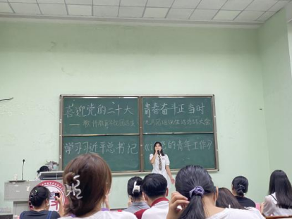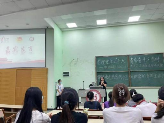 教师教育学院团总支组织部于9月23日在增城校区开展主题为“喜迎党的二十大,青春奋斗正当时”的九月团生总结大会活动。“方欲晓,莫道君行早。踏遍青山人未老,风景这边独好。”八十多年前,毛泽东同志怀着对前路的期待写下不朽的诗篇。如今,中国共产党带领中华民族取得的辉煌成就已经载入史册。喜逢盛世,青年一代站在历史的转折点,正以最昂然的姿态迎接党的二十大的到来,迎接盛世中国的到来。