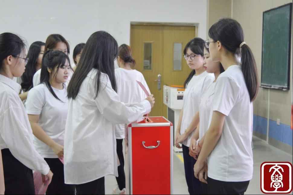大会第二项议程:通过第三届学生会委员会第一次全体会议《选举方法(草案)》;通过监票人,计票人建议名单。监票人:王怡荻;计票人:张铭慧、关泳楠、丘熠楠;最后由监票人王怡荻老师报告文学院第三届学生会主席团成员计票结果。