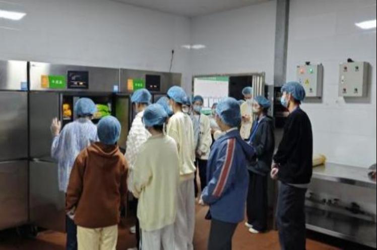 在活动的过程中,工作人员引导同学们有序地排队进入后厨,带领同学们参观了食品加工场所、储物仓、清洗池等,向同学们一一讲解了食堂后厨规范化管理的相关要求。通过工作人员的讲解,同学们对食堂后厨食品原材料的选用及加工流程也有了更加深入的了解。