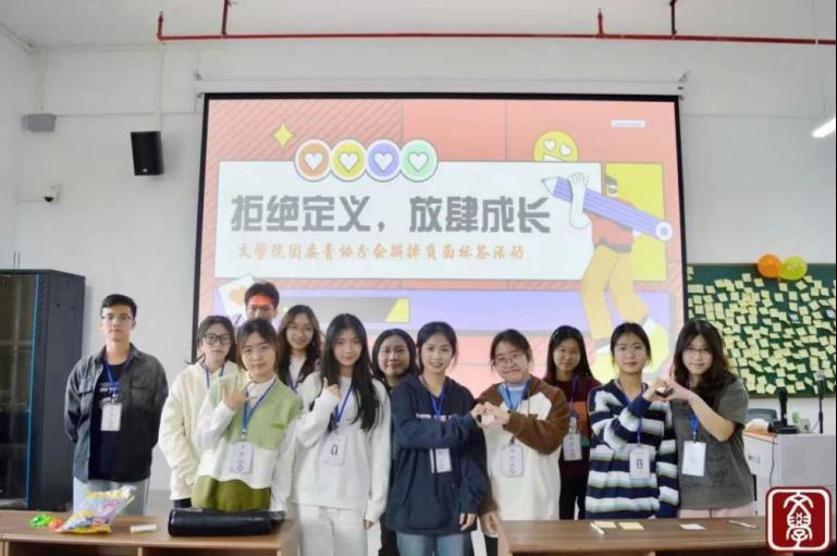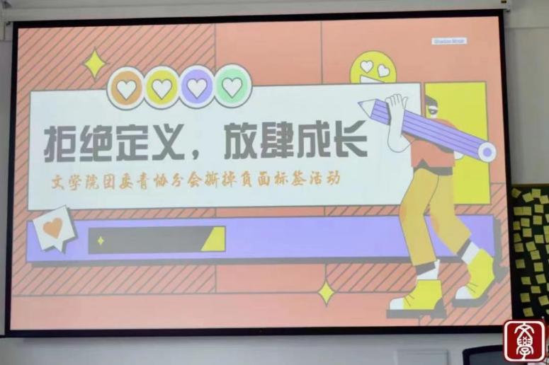 为呼吁同学们减少内耗,释放心中的压力,树立积极健康向上的心态,提高自我调节情绪与释放压力的能力。同时鼓励同学们冲出桎梏,打破定义,勇敢地做自己。文学院团委青协分会于2023年12月8日下午15:00在肇庆校区16号楼103教室举办文学院“拒绝定义,放肆成长”撕掉负面标签活动。