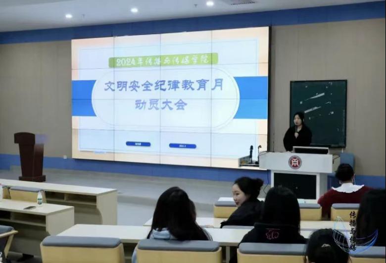 广州华商学院传播与传媒学院于3月12日下午召开了2024学年文明安全纪律教育月动员大会。本次大会由传播与传媒学院辅导员胡丽轩、潘莹、吴梦玲三位老师主持,各班班委及各组织负责人参与。