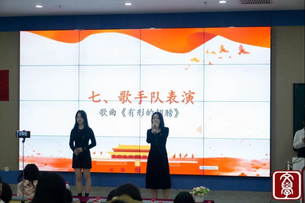 紧随其后的是由文学院艺术团歌手队倾情演唱的《有形的翅膀》。歌词将每个人内在的力量比作一双有形的翅膀,它能够帮助我们克服困难,迎接挑战,实现自己的梦想。