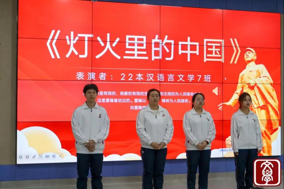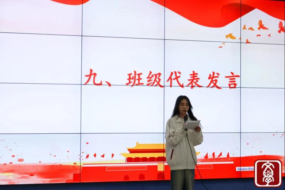 公布完获奖名单,接下来我们大会进行到第九项议程,由班级代表23级汉语言文学3班的谭慧玲同学上台进行发言。她通过讲述雷锋故事,强调在生活中践行雷锋精神的重要意义。