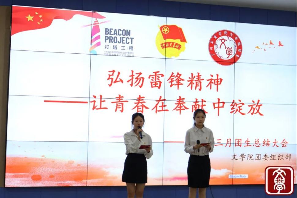 近日,华商文学院团委组织部隆重举行了三月团生总结大会,旨在回顾过去一个月团生活动的精彩瞬间,同时传承和弘扬雷锋精神。此次大会嘉宾云集,文学院团委书记王怡荻老师、学生会指导老师丘淳苑老师、李慧婷老师,团委学生兼职副书记张铭慧师姐、学生会主席团成员林洁茹师姐,以及校团委组织部负责人代表和各院系团委组织部负责人代表共同出席,为大会增添了浓厚的学术氛围。