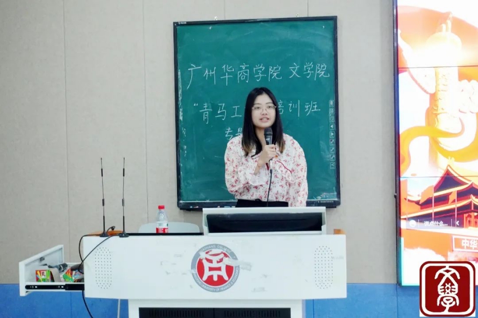 第二项议程,主持人向大家介绍了出席本次授课的与会人员:文学院学生会指导老师李慧婷老师、文学院第一期“青马工程”培训班全体学员。
