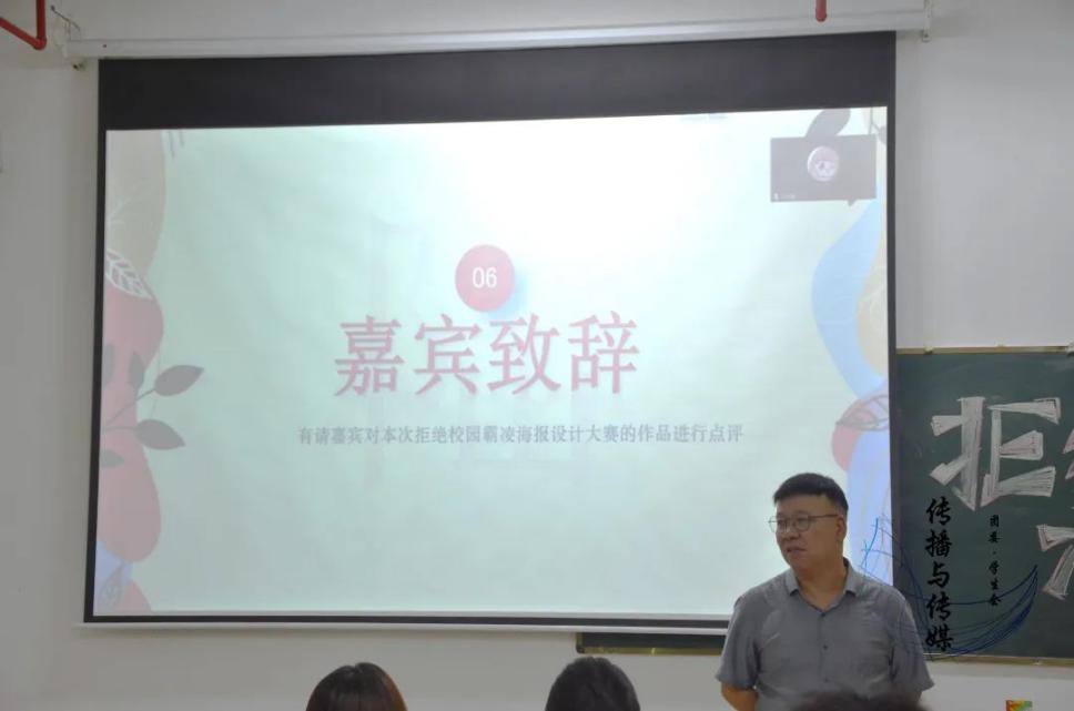 广州华商学院传播与传媒学院团委宣传部于2024年5月30日19:00在肇庆校区8号楼406教室举行以“对校园暴力说‘不’让青春向阳花开”为主题的海报设计大赛决赛。
