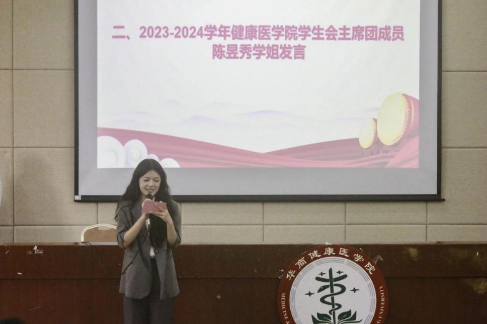 接着分别由2023-2024学年健康医学院学生会主优秀部门负责人席团成员陈昱秀师姐、2024-2025学年健康医学院团委常委团学生代表孔令捷同学和优秀部门负责人李灏师兄发言。他们表示衷心地感谢各部门的辛勤付出,感谢老师的肯定和部门负责人的支持,希望,希望团委、学生会继续彼此鼓励,一起加油。