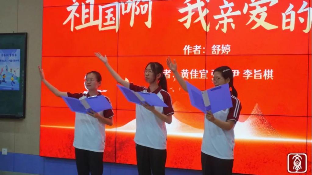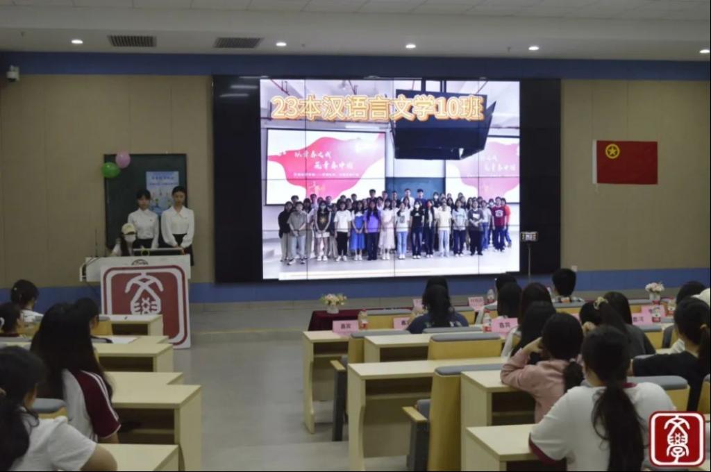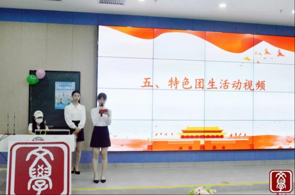 接着,大会展示了22级及23级各班的班级团生活动视频,形式多样灵活,内容丰富多彩,充分体现了同学们作为新时代接班人的热情和决心。紧接着,23本汉语言文学3班的同学带来了诗歌朗诵《祖国啊,我亲爱的祖国》,声音嘹亮,气势如虹,流露出对祖国无比的热爱之情。