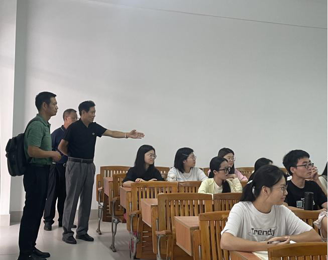 为全面了解肇庆校区学院的整体教学情况,9月4日,王金道院长、张博副院长、陈上仁副院长协同郑皓元院长助理、教学秘书林晞老师到肇庆校区进行2024-2025学年第一学期期初教学检查,深入肇庆校区课堂一线,对各个系部的授课情况进行全面细致的考察。