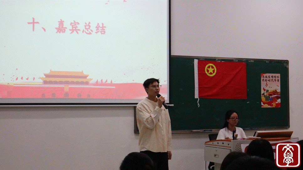 会议第十项议程,由文学院团委副书记何锦浩老师为我们的会议进行总结发言。