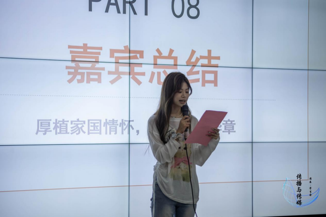 随后,各班班级代表依次上台进行展示,他们纷纷表示此次团生活动让同学们明确了自己在时代发展中应当担当的责任和使命,同时也更清晰自己在未来的学习生活中将不断提高和全面发展自我,以更好适应新时代发展需求。接下来,由传播与传媒学院艺术团歌手队带来动人的歌曲表演——《阿拉斯加的海湾》,展现了华商学子的多才多艺。随着互动环节和颁奖环节的结束,传播与传媒学院学生会候选主席团成员罗思敏师姐进行上台发言,她表示希望同学们可以肩负起自己的时代担当和责任。