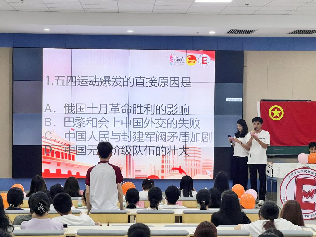 本次互动环节中,同学们踊跃参与答题——知识竞选。游戏共分为5轮,同学们需观看屏幕所展示的问题,思考给出的和五四运动有关的题目,最终进行抢答。
