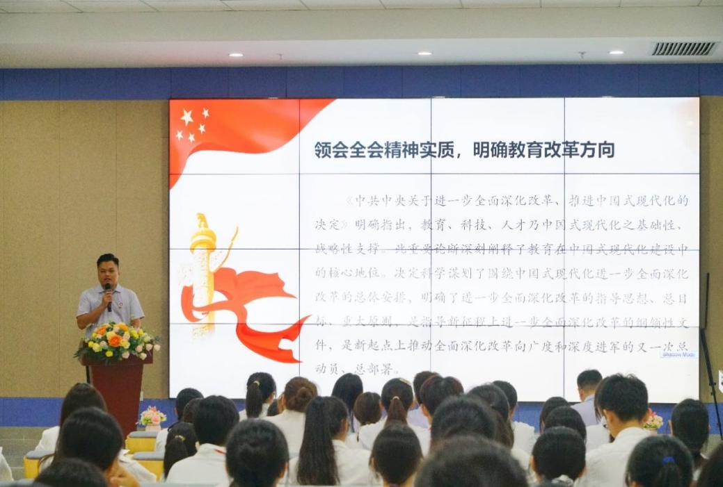 江庆基老师通过深入剖析全会精神实质、教育改革方向、素质教育强化策略、全面发展人才培育要点以及推进中国式现代化内涵,切实践行新时代青年的使命担当。