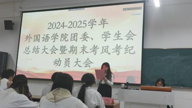 为总结过去一学期团委、学生会各部门工作情况,并对新的学期作出展望,广州华商学院外国语学院团委、学生会总结大会暨期末考风考纪动员大会于2024年12月4日在广州华商学院肇庆校区16号楼106、广州校区腾讯会议同步召开。