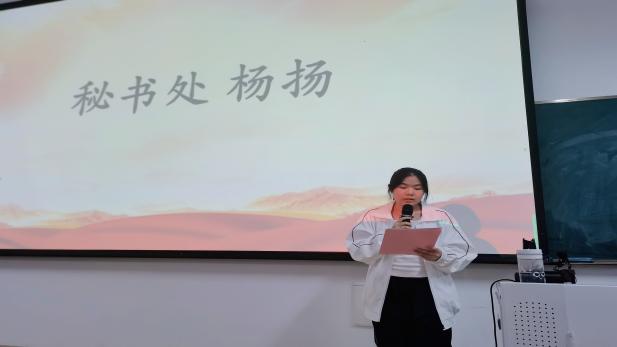 学生会优秀工作人员代表杨扬同学总结了过去一学年中自己的工作积累与表现,并对自己未来的工作作出展望,不断探索与实践,希望与同学们共同进步。