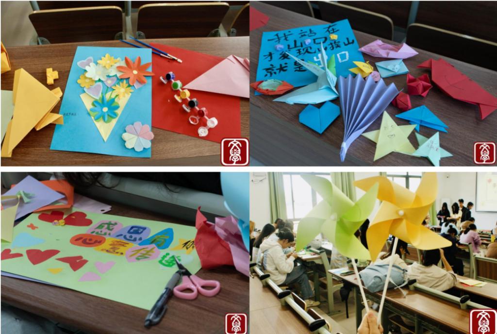 活动于11月26日15:00在肇庆校区16号楼204教室举行,在工作人员的引导下,学生们有序地参与了各项手工活动,活动内容丰富,包括制作感恩手工,写下感恩的话语将其送给想感恩之人,也可在现场将手工与他人交换,传递爱与温暖。