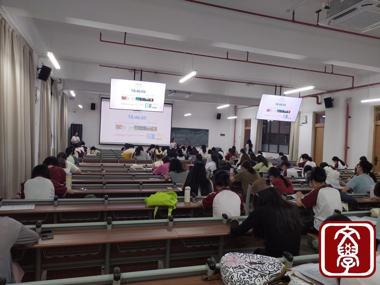 考试之前,各间考场的小组长宣读考试规则。18点30分开考指令准时发出,参赛者纷纷提笔答题。全场肃然,工作人员在考场来回巡视,现场安静地只有翻卷的‘沙沙’声和笔尖划过纸页的‘簌簌’声在空气中交织。初赛采取笔试的形式进行,考试题型分客观题和主观题,涵盖教育学理论、学科专业知识、注重“理论实践融合、德能并重考核”。