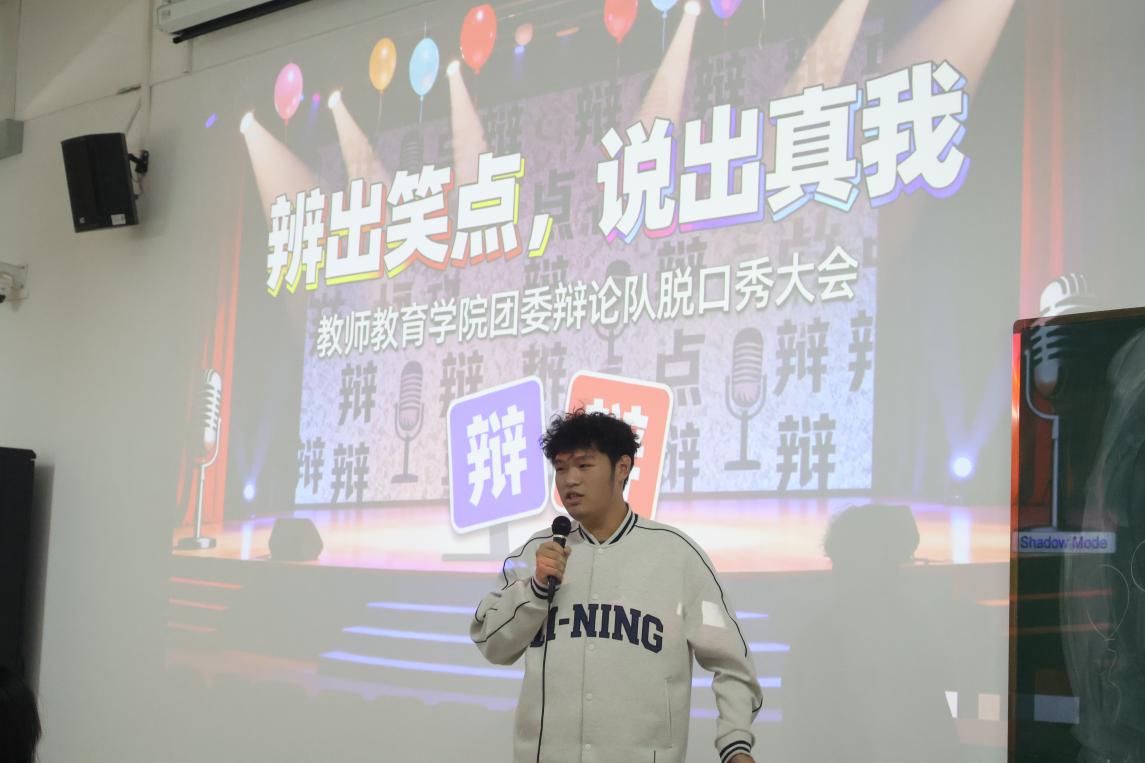 2025年11月25日(星期二),教师教育学院团委辩论队举办的第一届“辩”出笑点,说出真我脱口秀大会欢乐落幕,青春风采尽情绽放。活动以轻松幽默的形式搭建青春表达平台,吸引众多学子参与,为校园注入满满活力。
