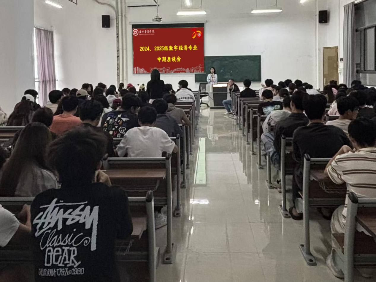 为加强师生交流,精准把脉学情,解答学生困惑,共同推动数字经济专业人才培养质量提升,2025年11月11日,数字经贸学院数字经济专业在广州华商学院肇庆校区成功举办了2024级与2025级新老生中期座谈会。本次座谈会由2024级数字经济专业班主任赵若淇老师,联合2025级班主任武志勇老师、张志鹏老师及辅导员江瑾老师共同组织两个年级的学生齐聚一堂,进行了深入而热烈的交流。