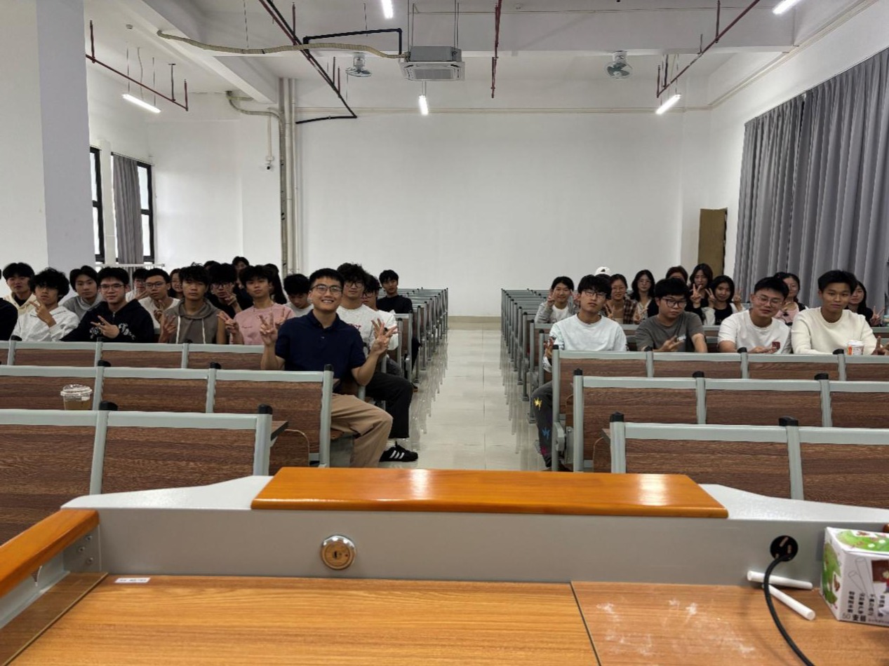 本学期新入职的张志鹏老师借此机会向同学们作了生动的自我介绍。他通过分享身边的真实案例,勉励同学们在大学这一黄金时期要勇于尝试,不怕试错,在不断的探索中明确自己的兴趣与方向,赢得了同学们的阵阵掌声。