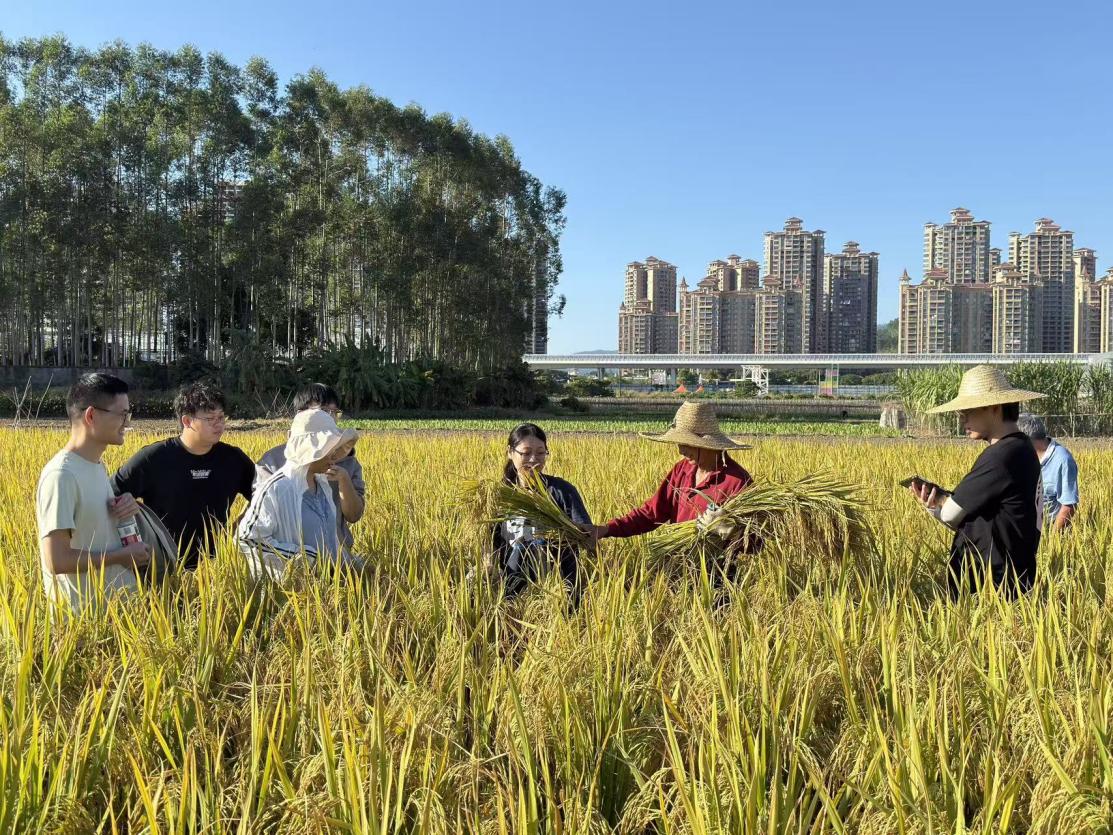 实地采样活动中,调查队工作人员讲解划定标准样本方区、精准收割固定面积稻谷、记录穗数与千粒重参数等规范流程。讲解结束后,学生们踏入稻田,在专业人员指导下分组开展实践,并收割后的稻谷运送至集中点进行脱粒称重。