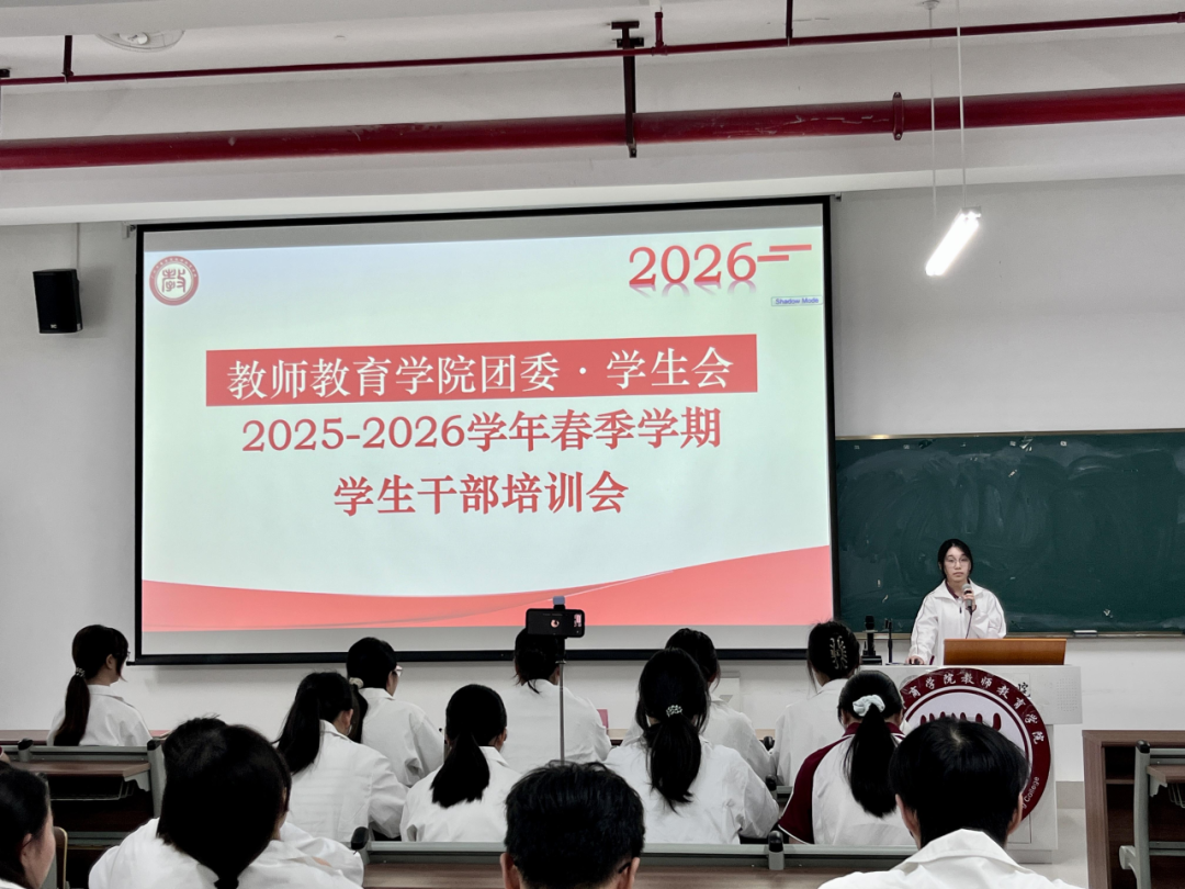 为推动学生骨干队伍建设提质增效,强化专业素养与组织凝聚力,提升综合管理与实际工作能力,明确职责分工,促进高效协同,教师教育学院于2026年3月17日晚上19:00在肇庆校区16号楼104召开教师教育学院团委·学生会2025-2026学年春季学期学生骨干培训会。