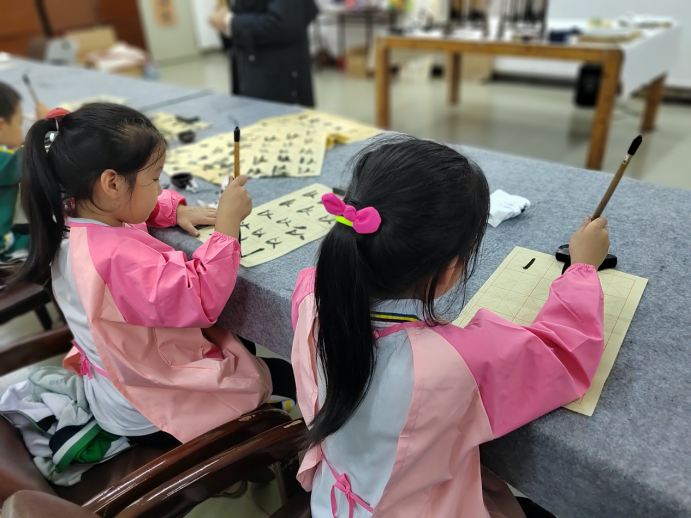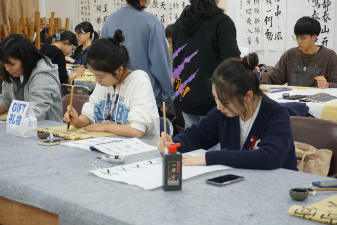 10月26日—11月19日,每周三、周六,我校书画协会在厚德楼C105为广大教职工及其子女开展公益教学活动。公益教学活动是书画协会每年定期开展的活动,不仅为教职工及其子女提供练习场地和书法工具,还有社团成员送上独家指导。活动现场,大小学员们一笔一划认真书写,沉浸于书法的魅力当中。社团成员们认真教学,不时走动停下脚步纠正学员们的握笔方式、书写方式,检查学员们的练习进度。学员们从学习中提升文化素质和对书法艺术的爱好,提升审美意识,陶冶情操;“老师们”通过公益课教学提升专业能力、与人沟通能力,营造浓厚校园书香氛围。