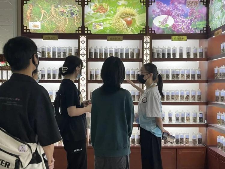⑤一齐嚟饮“冰广式”花茶体验活动。在湿热的广东地区,消暑解热的凉茶成了生活必备,同学们参观中药标本馆,了解各种药材,品尝“冰广式”。