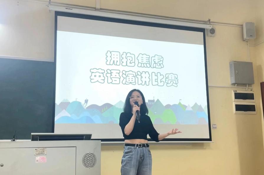 ④“拥抱焦虑”演讲比赛。为了帮助同学们更加科学的面对焦虑,提高焦虑情绪的调节能力,同时给喜欢英语的同学一个锻炼的平台,感受外语与演讲碰撞的魅力,因此举办了“拥抱焦虑”演讲比赛。