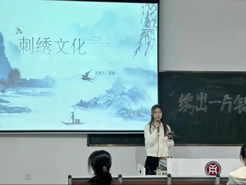 活动开始,主持人从刺绣的演变和刺绣的意义两个方面为同学们介绍刺绣文化。