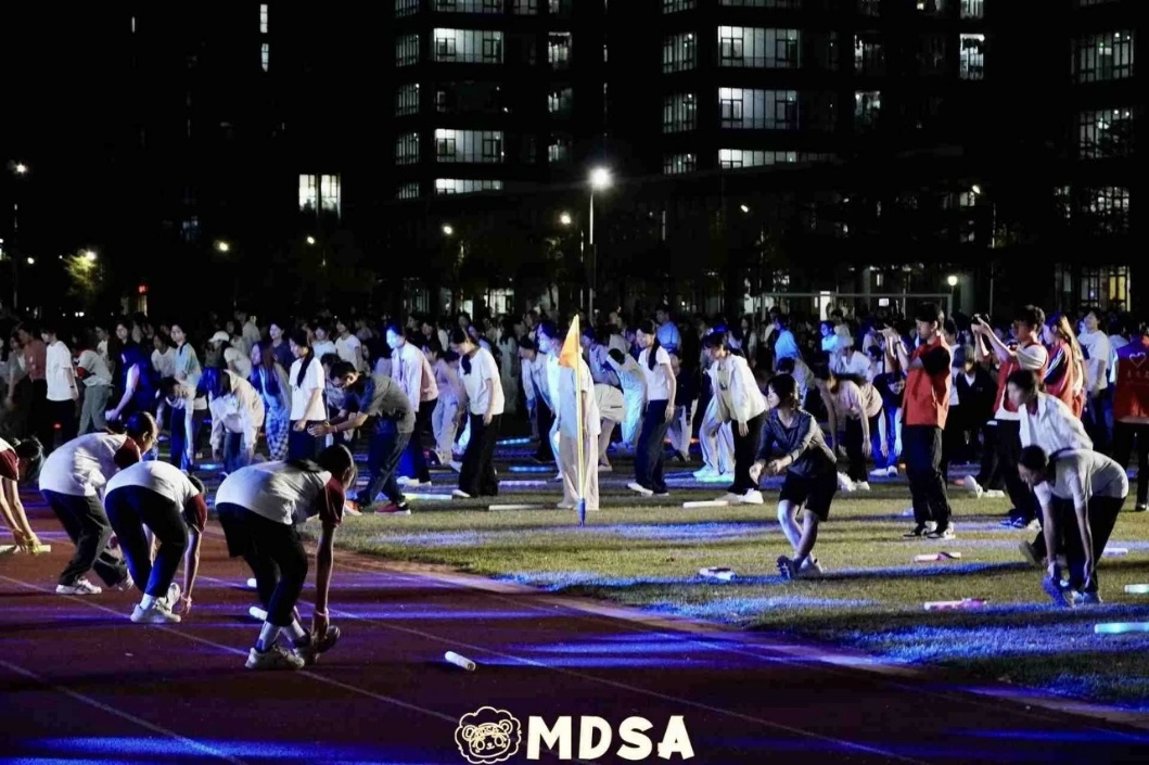 随后,由专业老师与工作人员带领,开展一系列针对性的热身活动——从头部拉伸到腿部舒展,从关节激活到心肺预热,每一个动作都细致引导,帮助大家充分唤醒身体机能,为后续夜跑筑牢安全防线,有效降低运动受伤风险。
