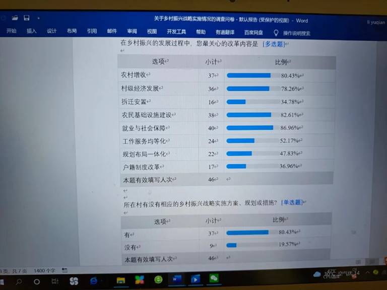 活动期间,各队员在线上发表调研问卷,并邀请相关村民进行填写,根据收集到的问卷结果进行比较分析,作为撰写调研报告的依据。通过问卷和采访,队员们了解到马岳村自新农村建设以来的变化,早期的巷道从泥路变成水泥地;污水排放实现“雨污分流”,并建设污水处理池;牲畜的放养现以圈养为主等现状,启发队员们从不同产业进行思考,深入探索马岳村如何继续发展的问题。